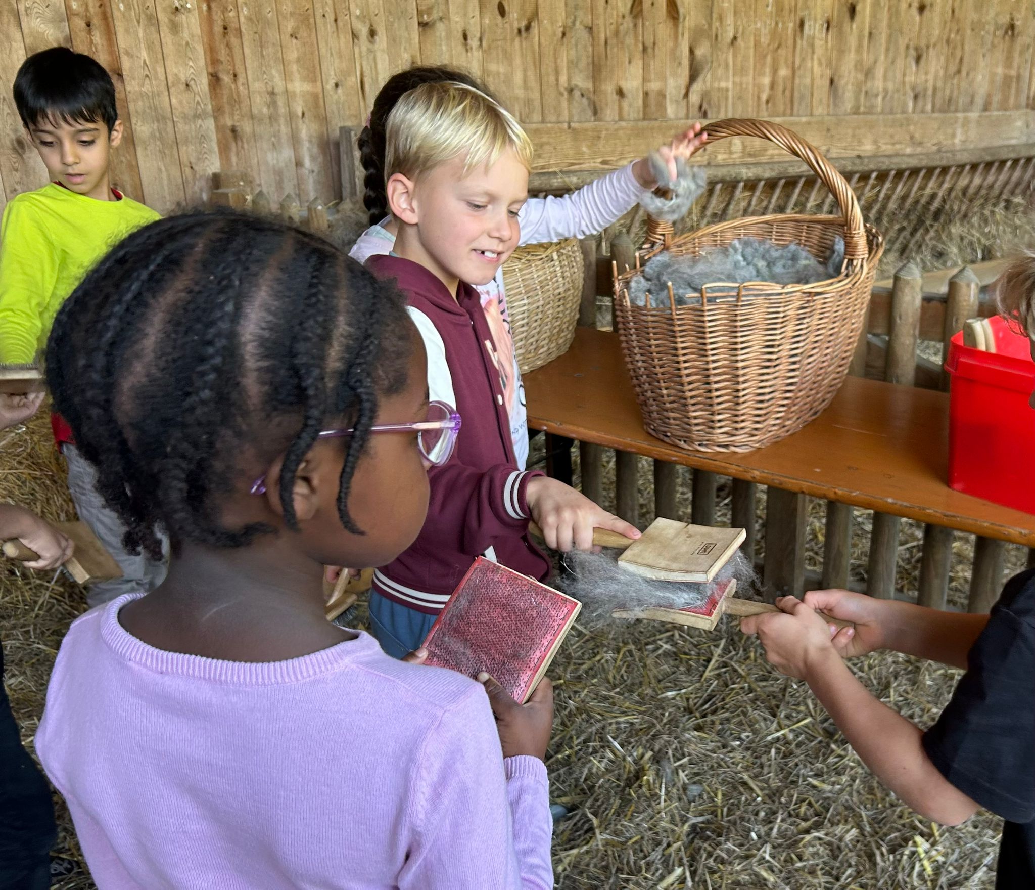 Dafür haben wir Wolle gewaschen und im Anschluss gebürstet.