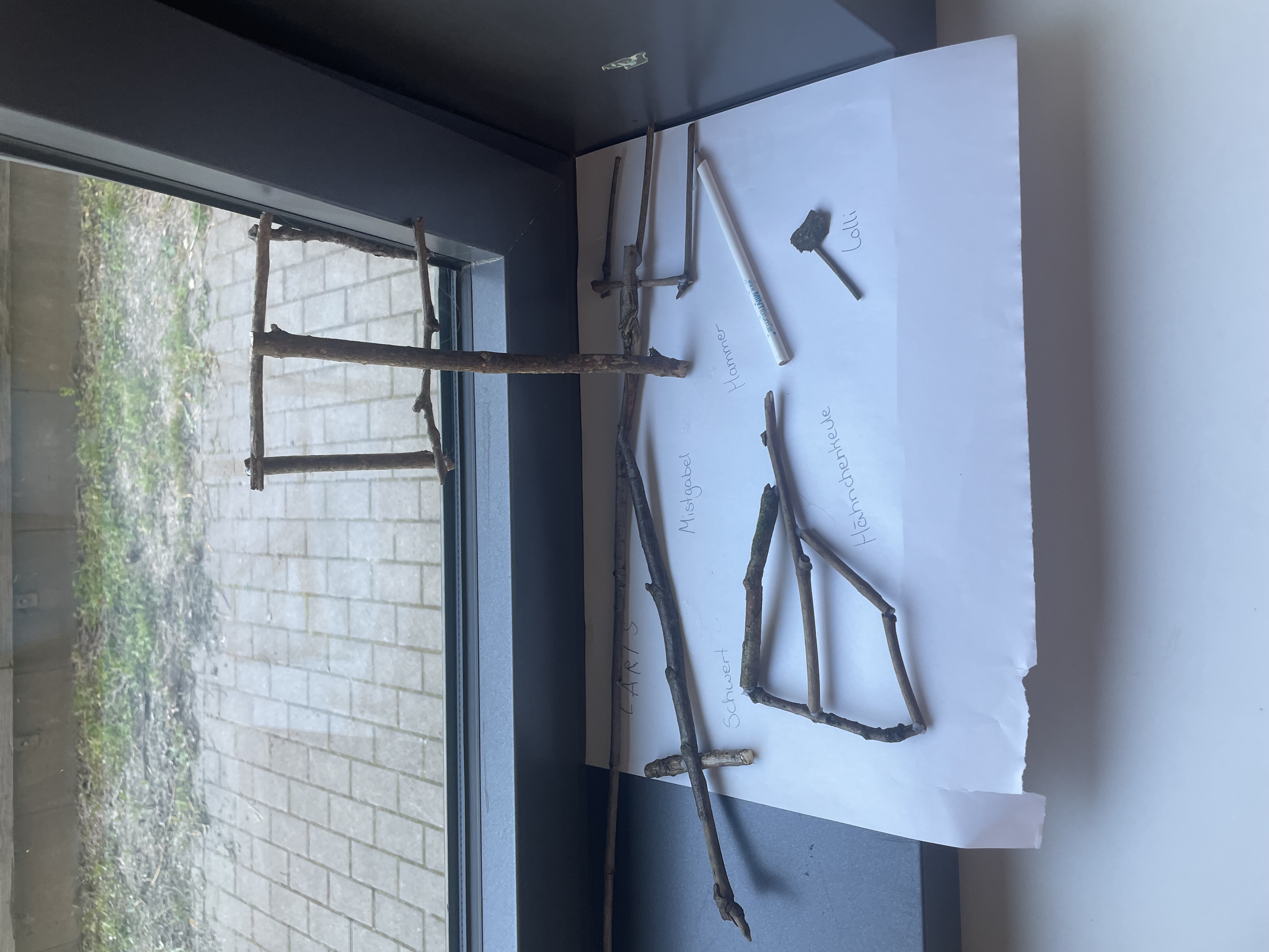 Idee: Die Kinder sollen kleine Skulpturen aus Ästchen gestalten, deren natürliche Beschaffenheit sie nicht verändern können.