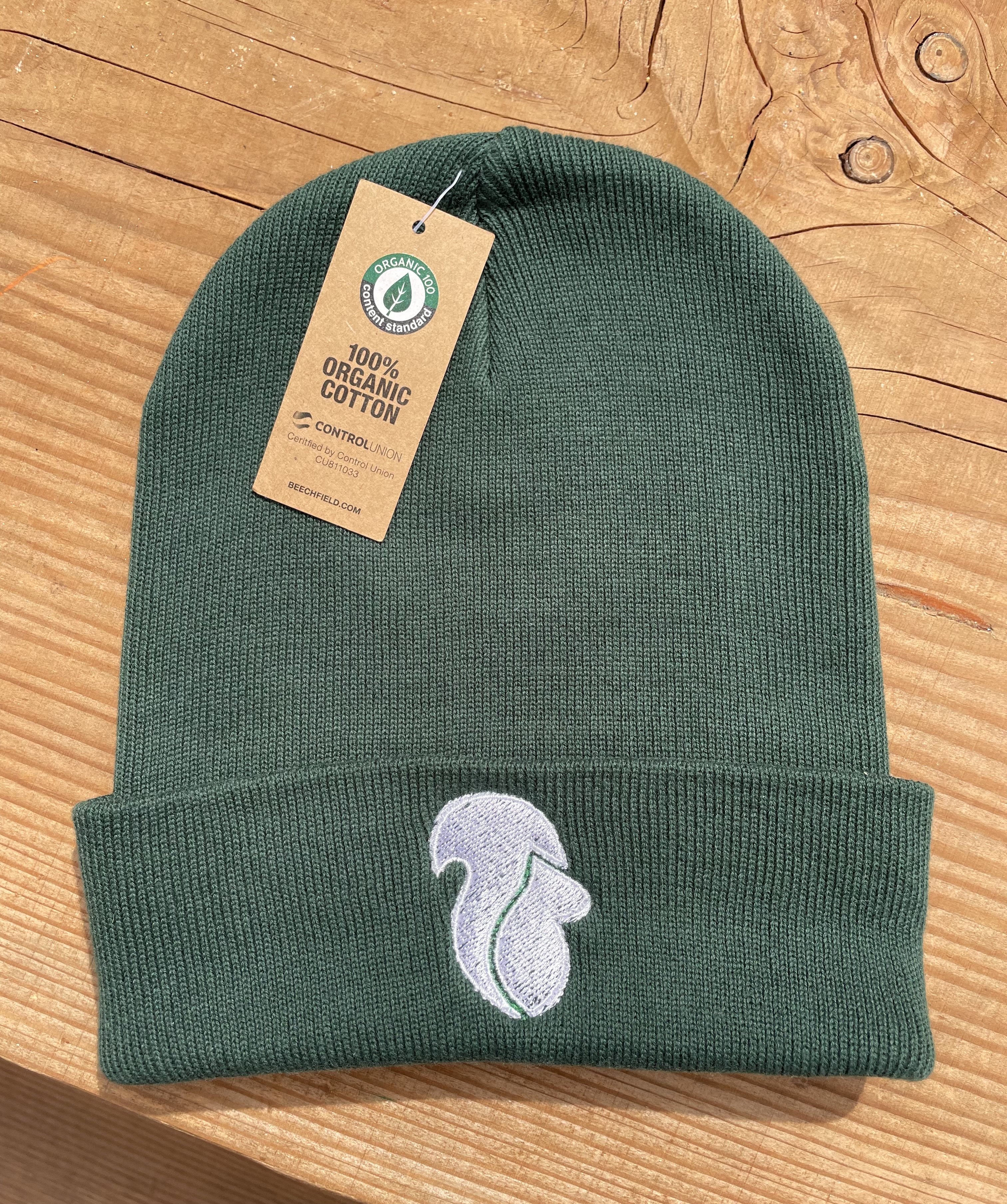 Mütze, Biobaumwolle, dunkegrün, Stick vorne