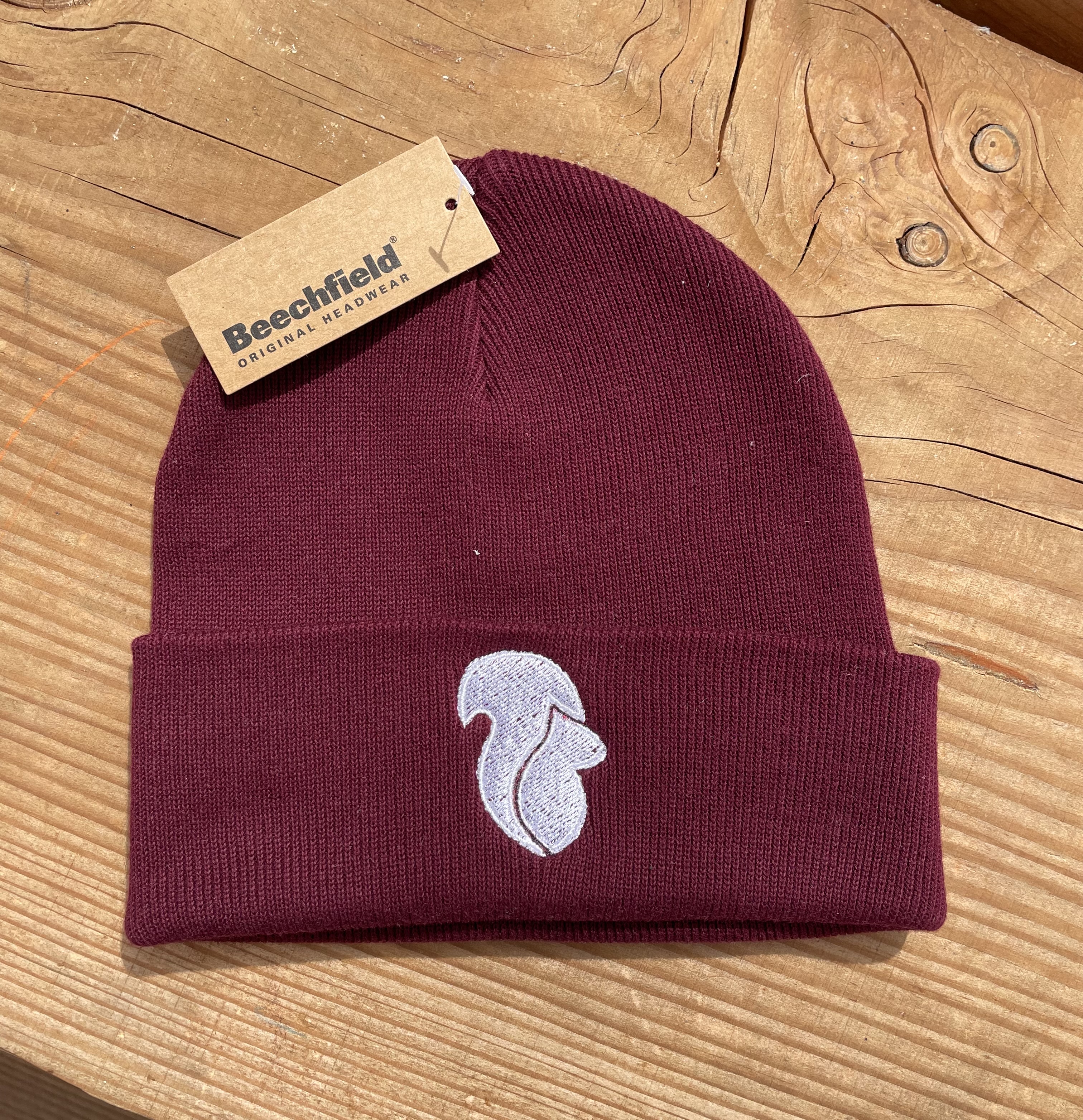 Mütze, Biobaumwolle, weinrot, Stick vorne