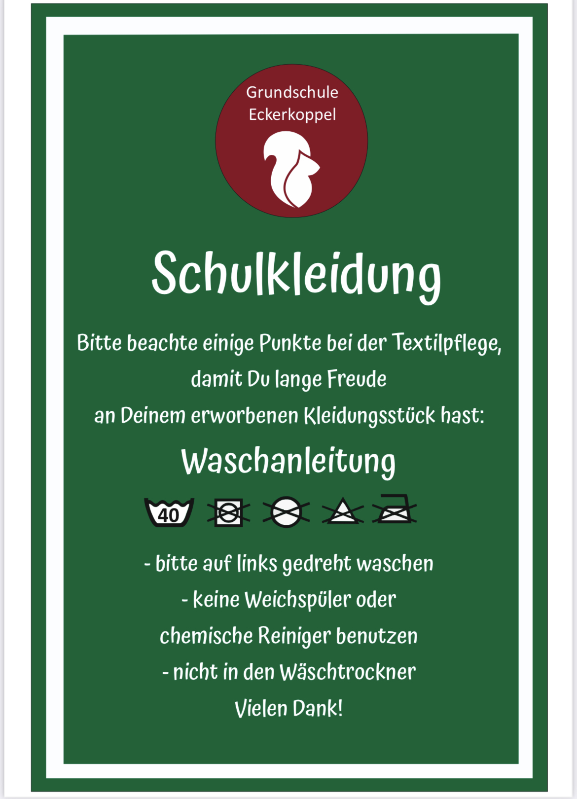 wir möchten Ihnen und euch hier gerne unsere Schulkleidung sowie die Accessoires mit unserem Schullogo, dem Eichhörnchen “Chips”, vorstellen.