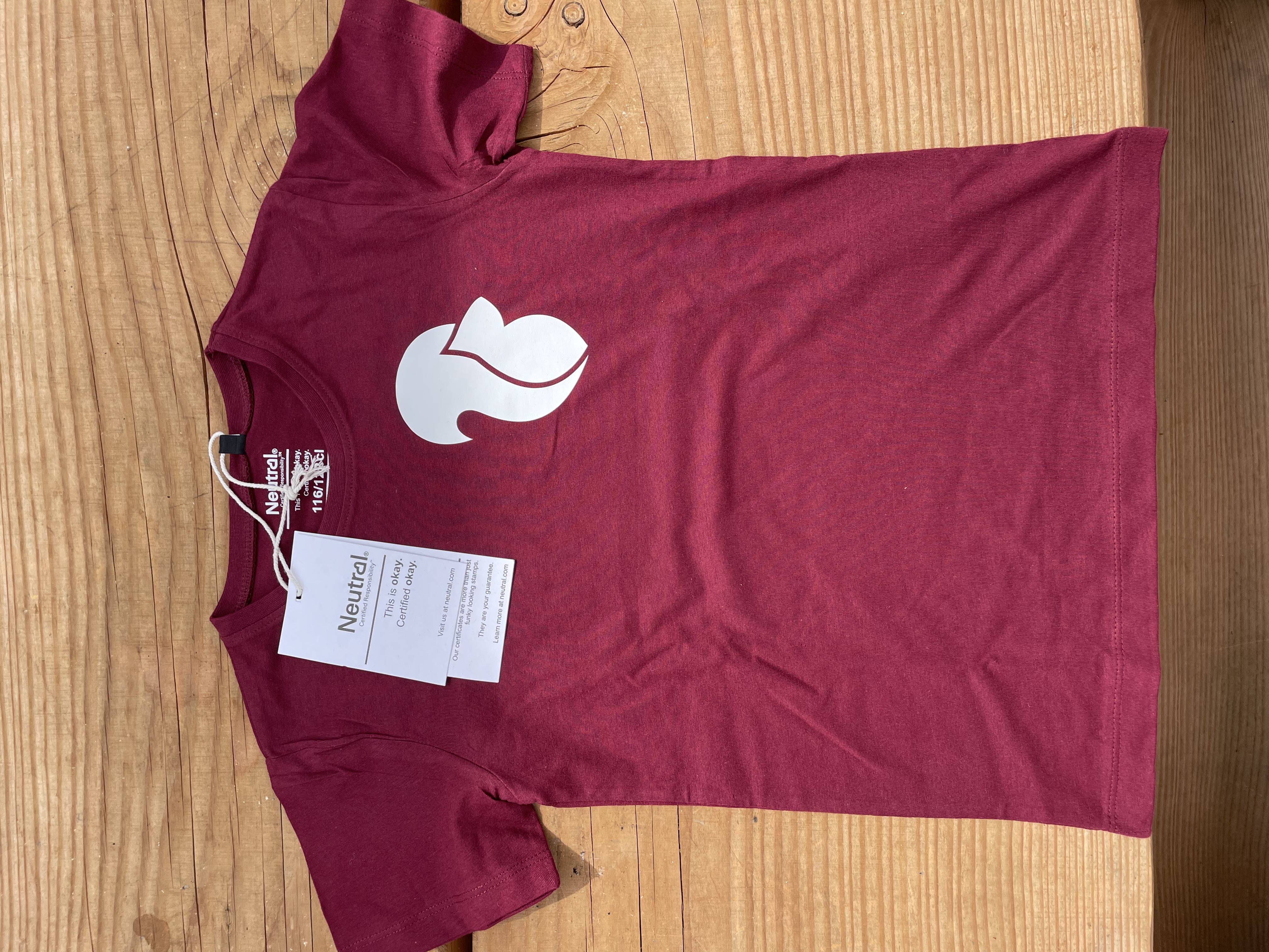 T- shirt, Biobaumwolle, weinrot, Druck vorne und hinten